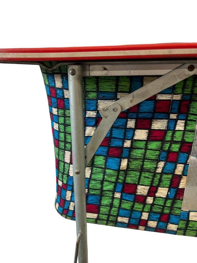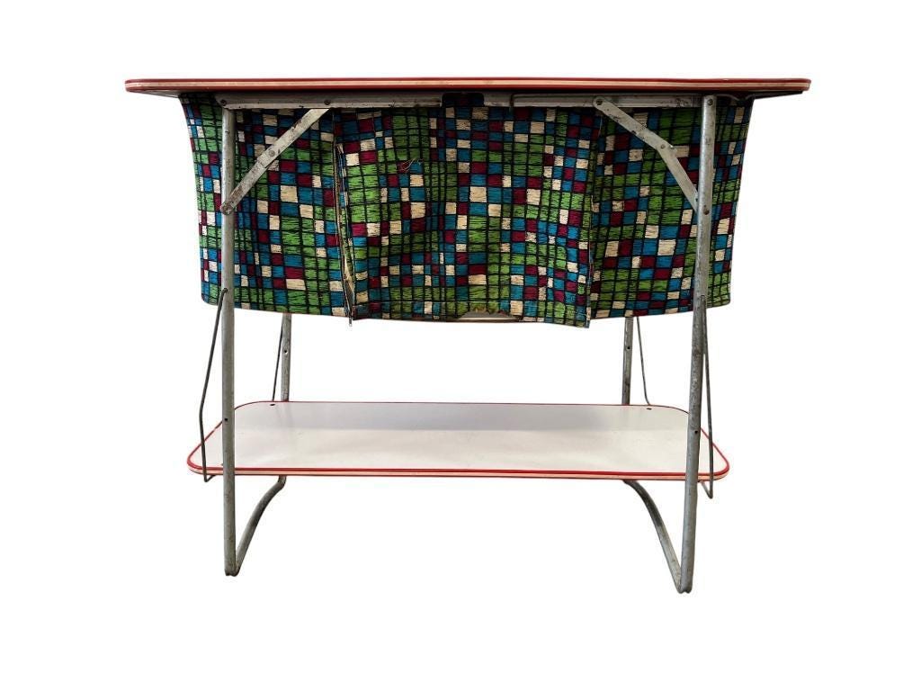 retro uitklapbaar tafeltje met onderaan kastje in textiel