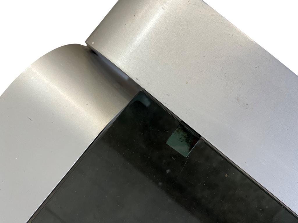 Deze space age tafel is in goede conditie. Het aluminimum frame laat gebruik van sporen zien, zoals krasjes