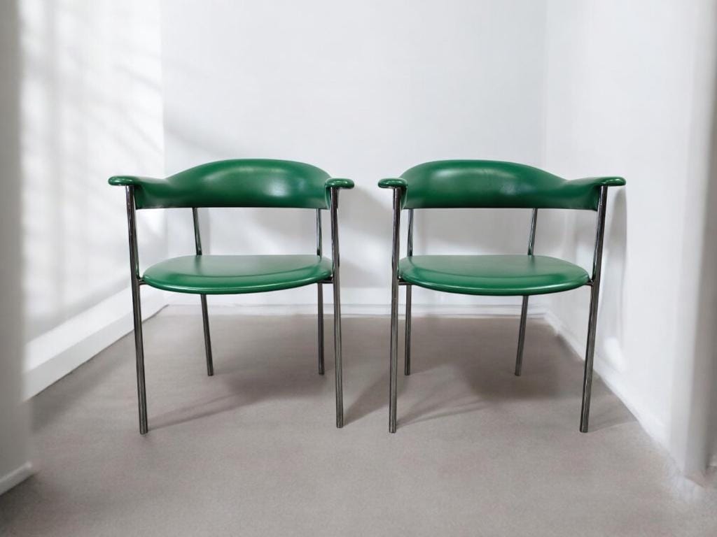 set van 2 vintage groene stoelen / fauteuils / loungechairs