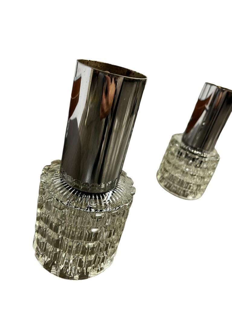 Vintage luster met 6 lichtpunten : glas & chroom & hout