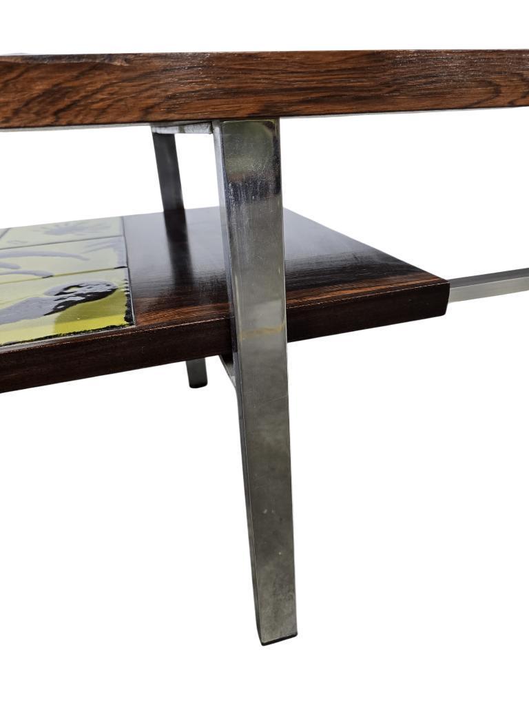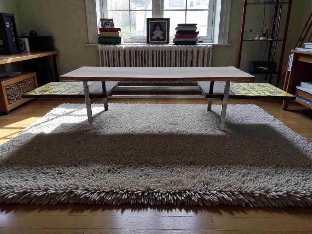 retro coffee table met keramieken extensies in het geel, thema horoscopen in de stijl van Henri Matisse
