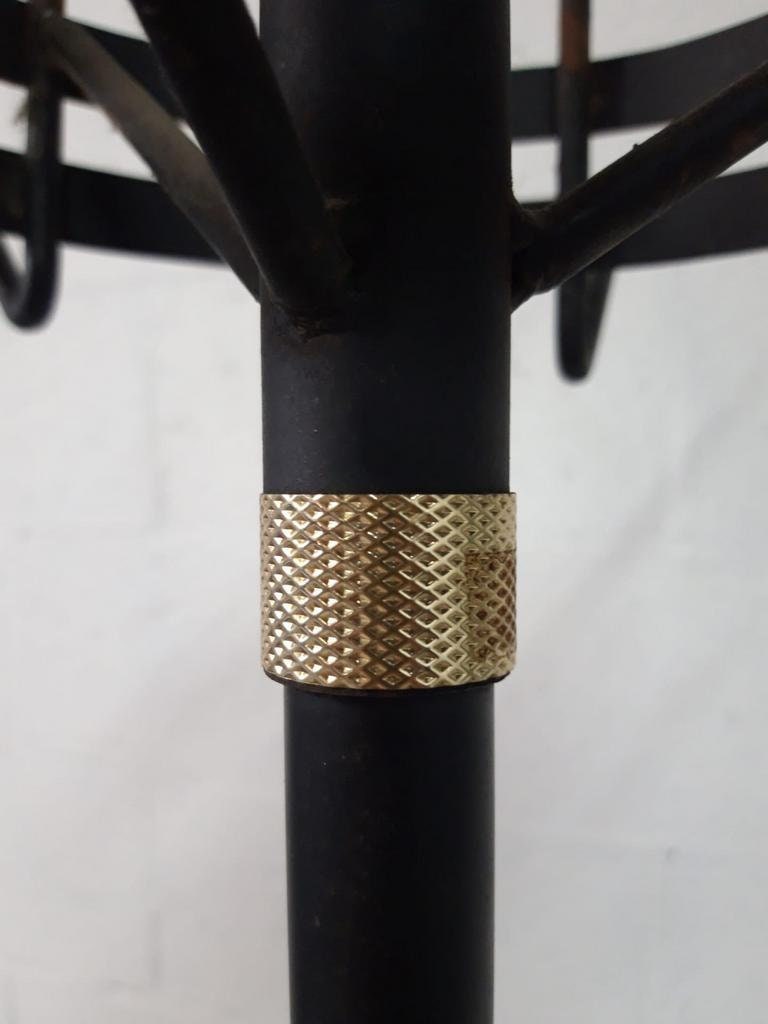 58 x 169 hvintage zwarte staankapstok met 'gouden' accentretro gietijzeren vloerkapstok