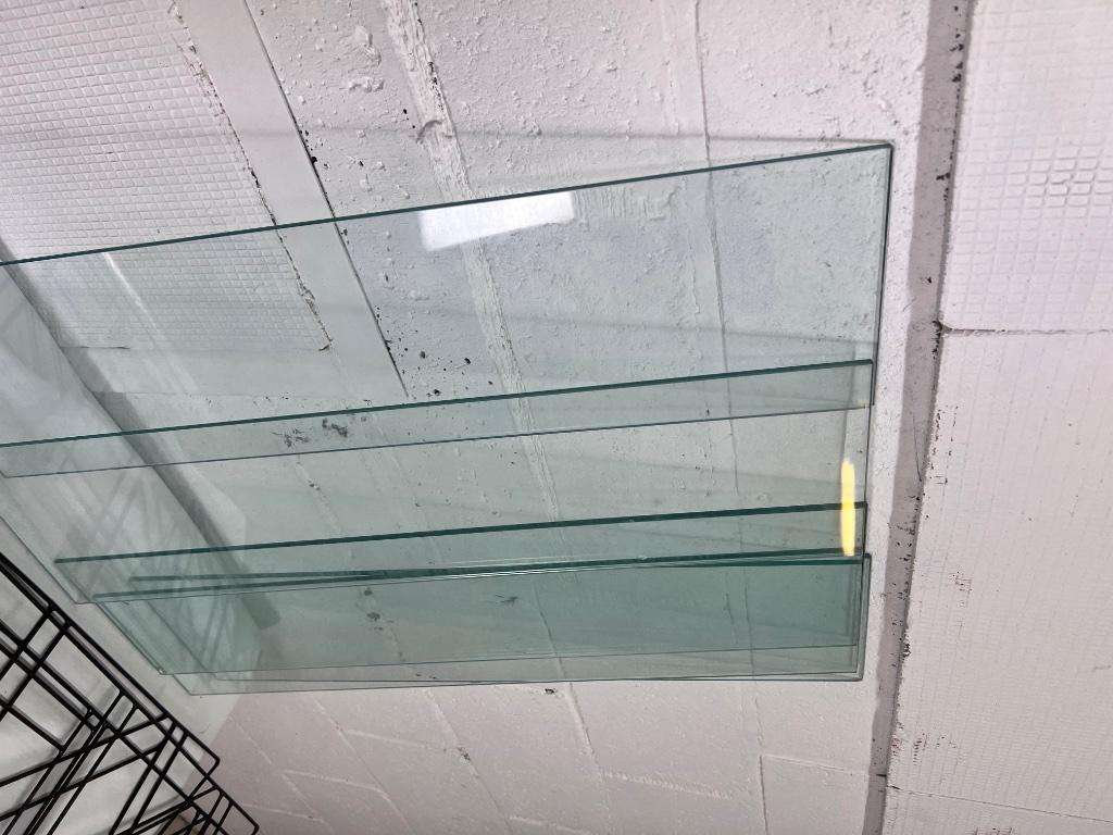 rek 140 x 20 x 88 hVintage glazen wandrek / etagere / boekenrekRetro mini wall unit in glas met metalen houders