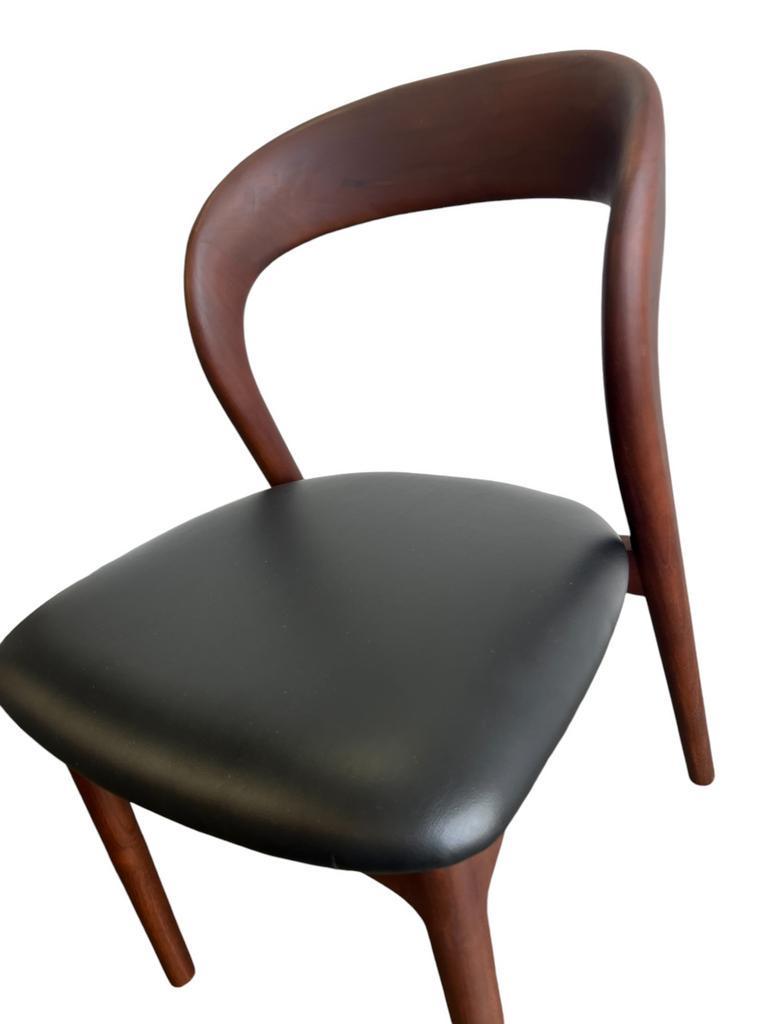 Belangrijkste Kenmerken:Hoogwaardig Teak Hout:Duurzaam en esthetisch aantrekkelijk, met een rijke natuurlijke tint.Handgemaakt:Elk exemplaar is uniek en met zorg vervaardigd door Balinese vaklieden.Lederen Zitting: Hoogwaardig zwart leder biedt ultiem zitcomfort en een luxe uitstraling.Strakke Leuning: Ergonomisch ontworpen voor optimaal zitcomfort en een eigentijdse look.Tijdloos en Elegant:Past perfect in zowel moderne als klassieke interieurs.