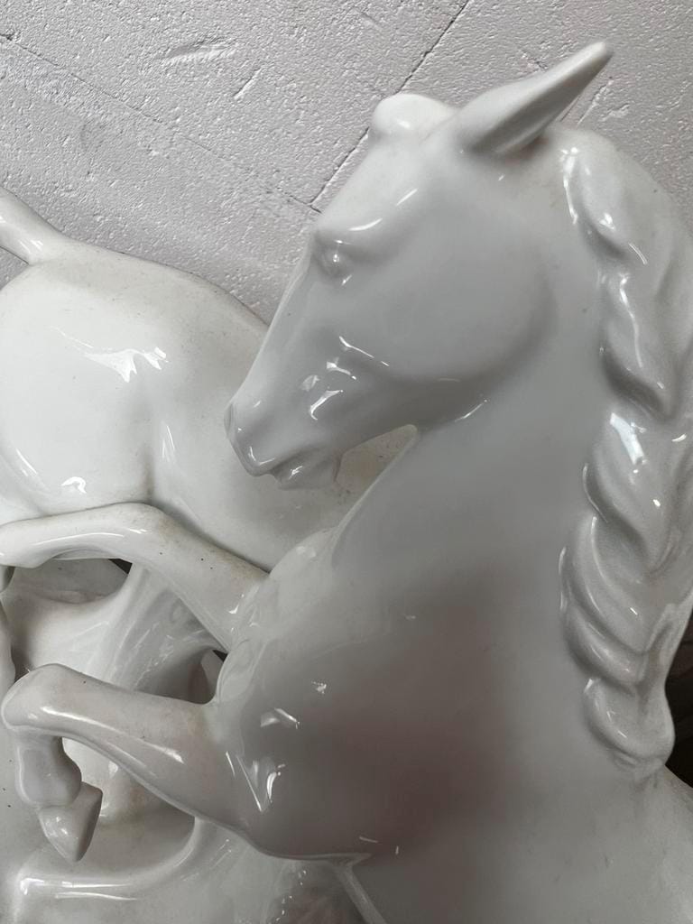 Oud witte porseleinen beeldje van 2 paarden