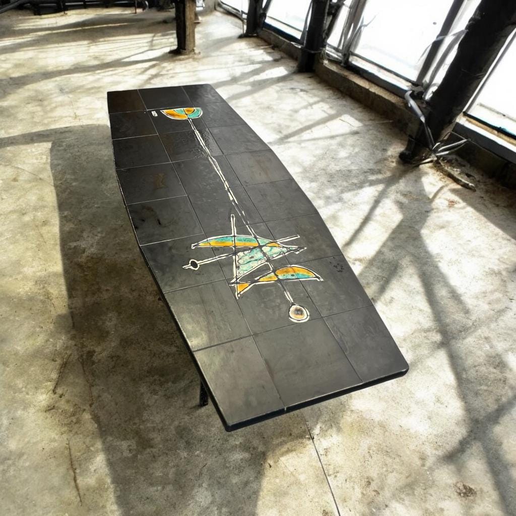 Retro tegeltafel van Moîses Ceramique met zwart stalen frame