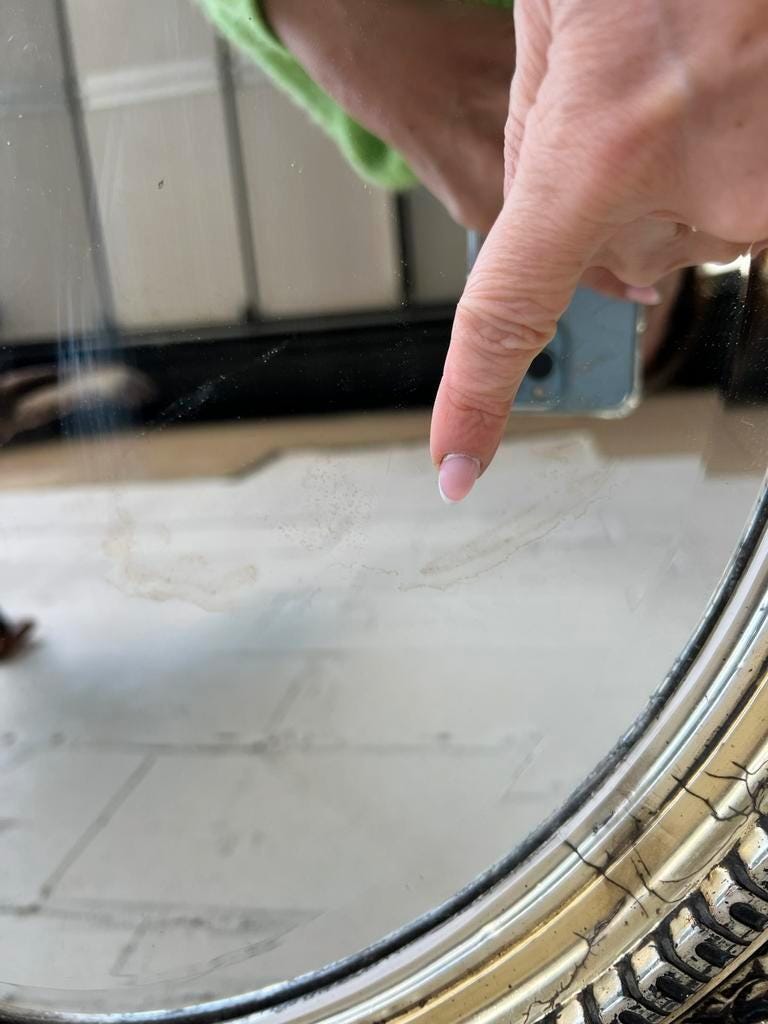 kleine verkleuring op spiegel , moeilijk op foto te krijgen
