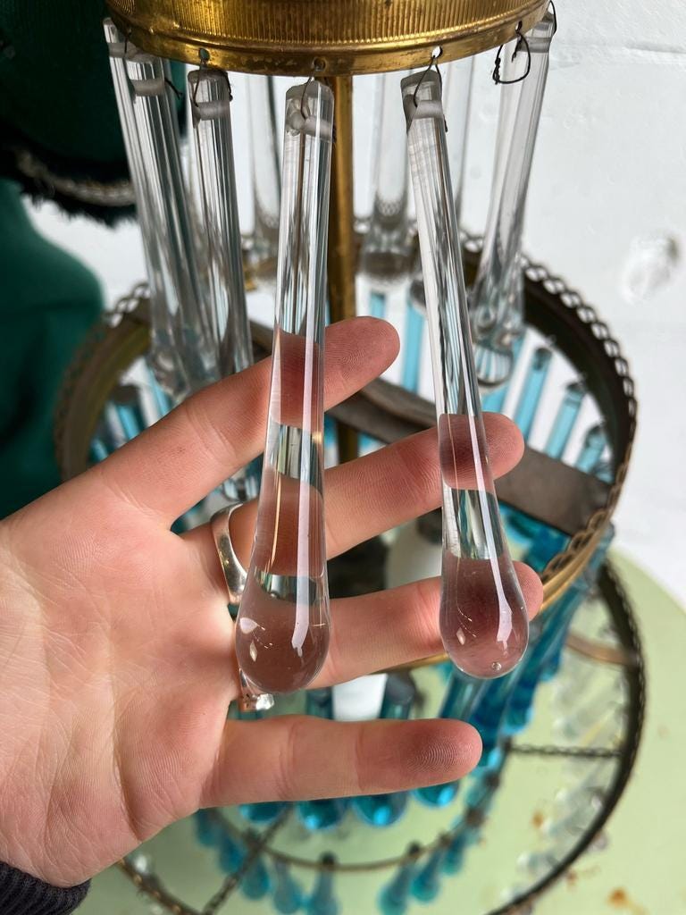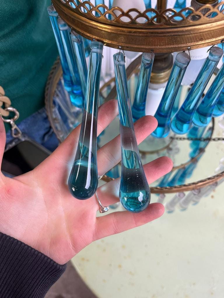 Vintage blauwe teardrop luster / chandelier / hanglamp