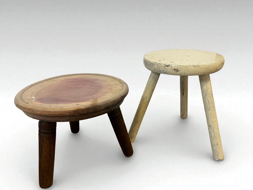 retro houten (tripod) mini krukje / melkkrukje
