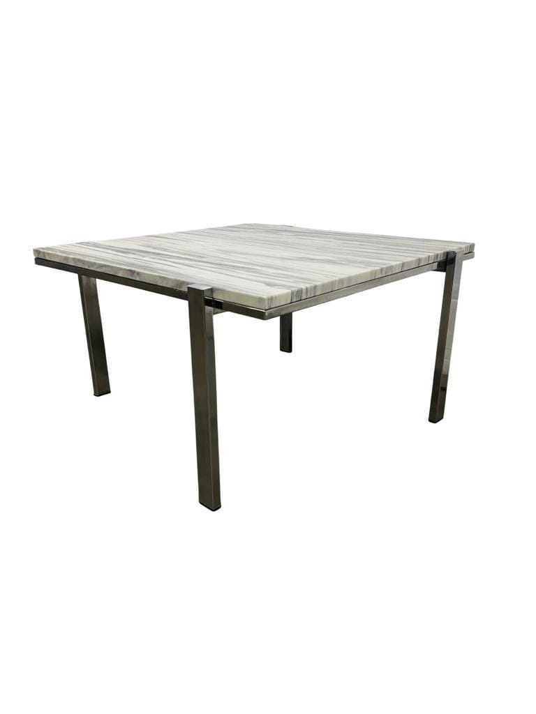 retro stenen vierkante sidetable met chromen frame jaren 70