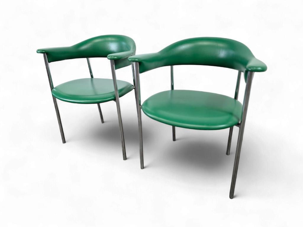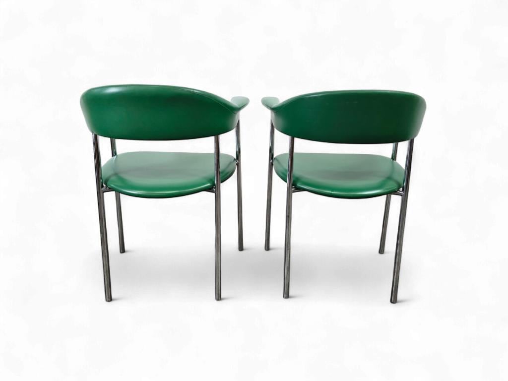 set van 2 vintage groene stoelen / fauteuils / loungechairs