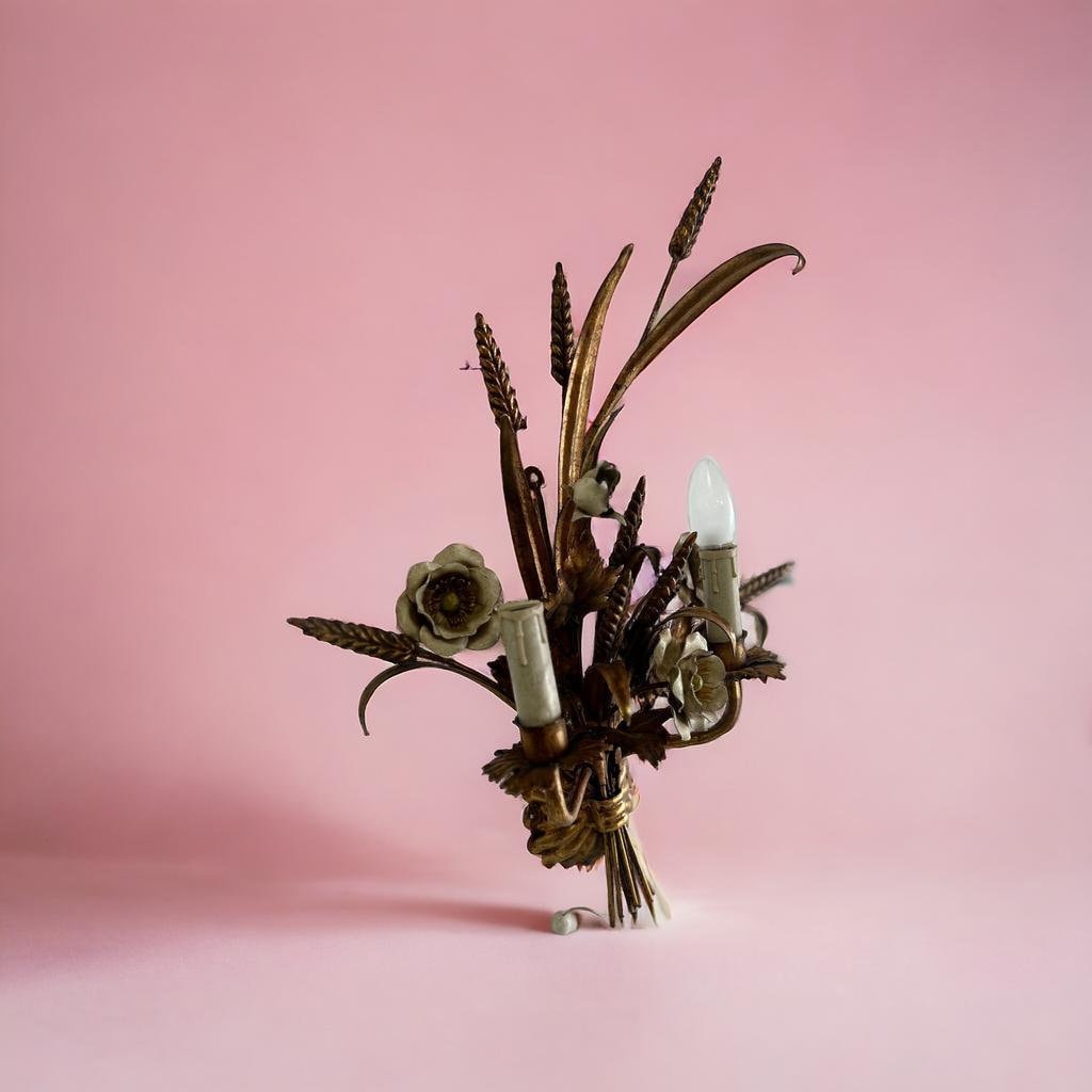 Vintage 'gouden' wheat wall lamp met bloemen : Franse stijl
