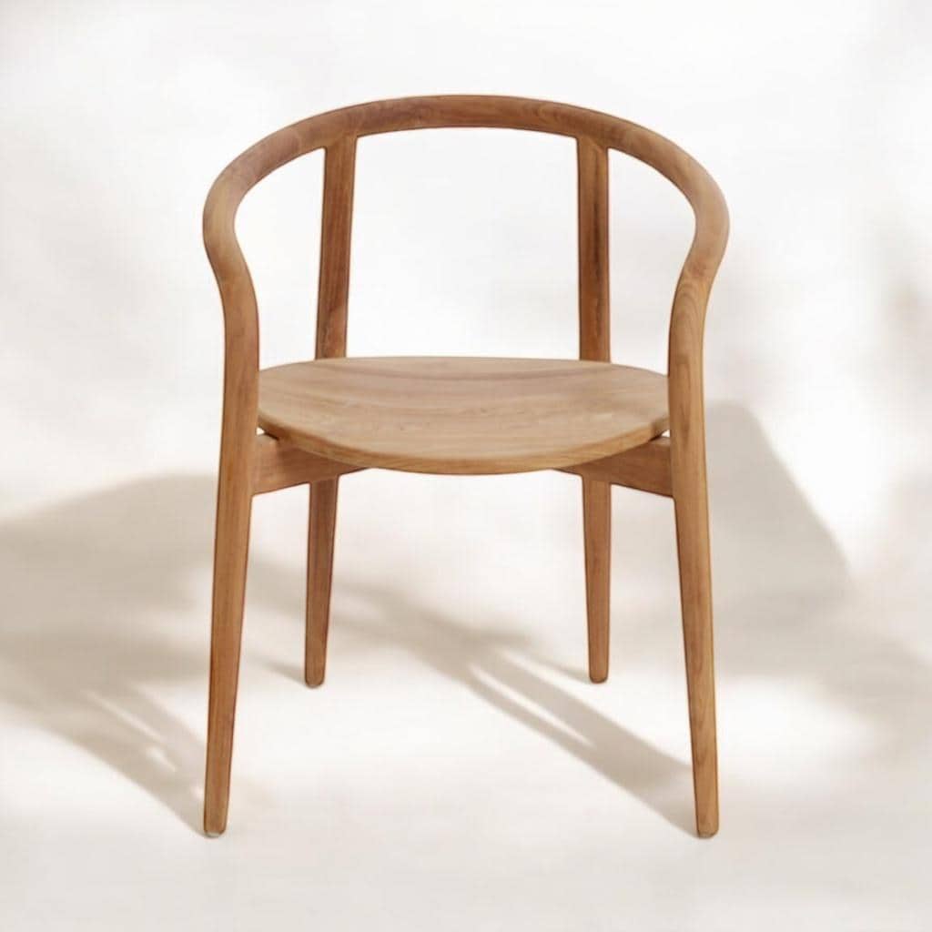 De Elise eetkamerstoel, een van onze bestsellers, brengt een vleugje natuurlijke elegantie in elke eetkamer. Volledig vervaardigd uit hoogwaardig kwalitatief teak hout, straalt deze stoel duurzaamheid en verfijning uit. Het ontwerp van de Elise kenmerkt zich door de elegante ronde bogen in de rugleuning en armleuningen, wat zorgt voor een moderne en stijlvolle uitstraling. Met afmetingen identiek aan die van de Julia stoel (58 cm breed, 52 cm diep, 75 cm hoog en een zithoogte van 45 cm), biedt de Elise een comfortabele en uitnodigende zitervaring.