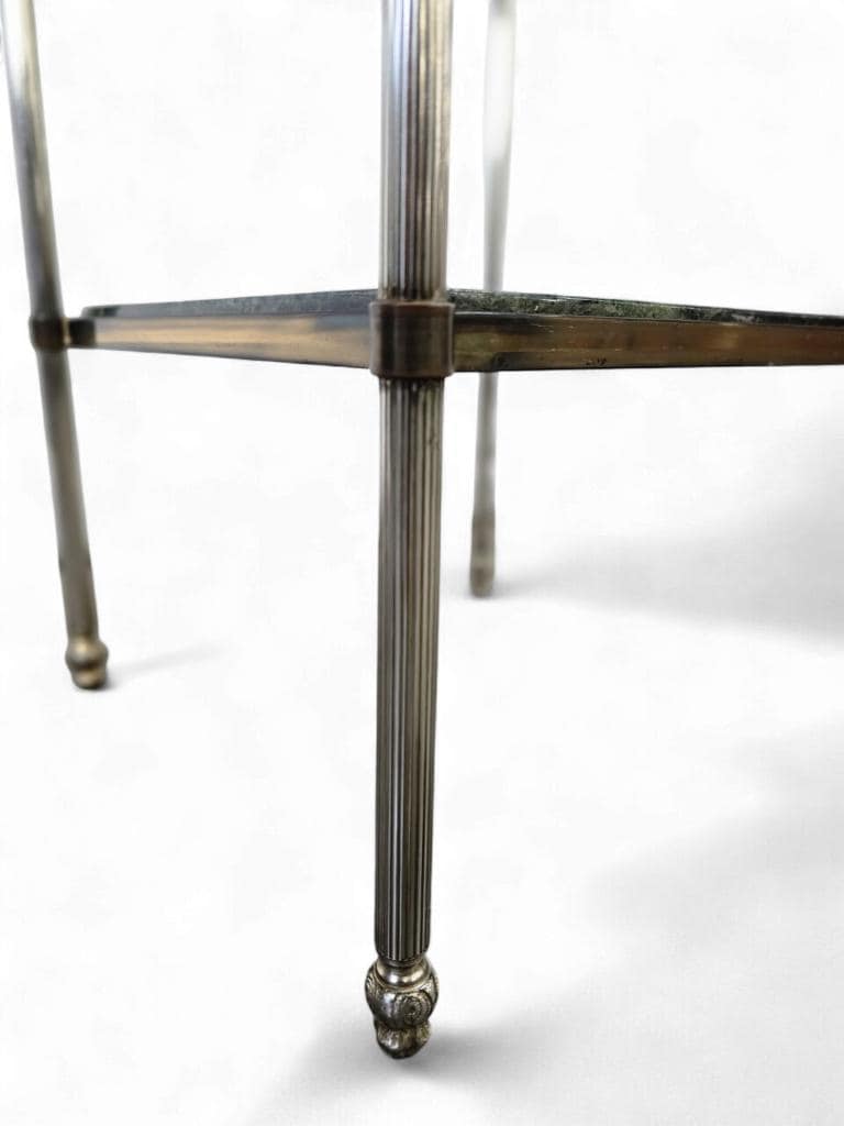 retro 'gouden' tafeltje / etagere / plantentafel in messing met groene steen