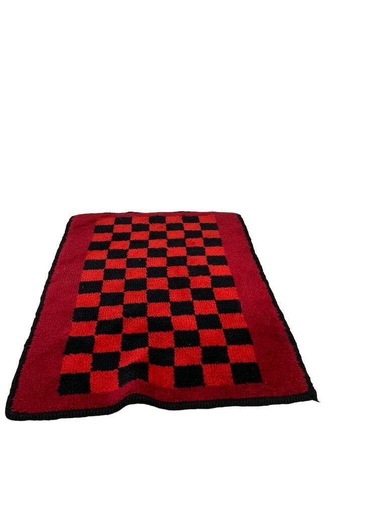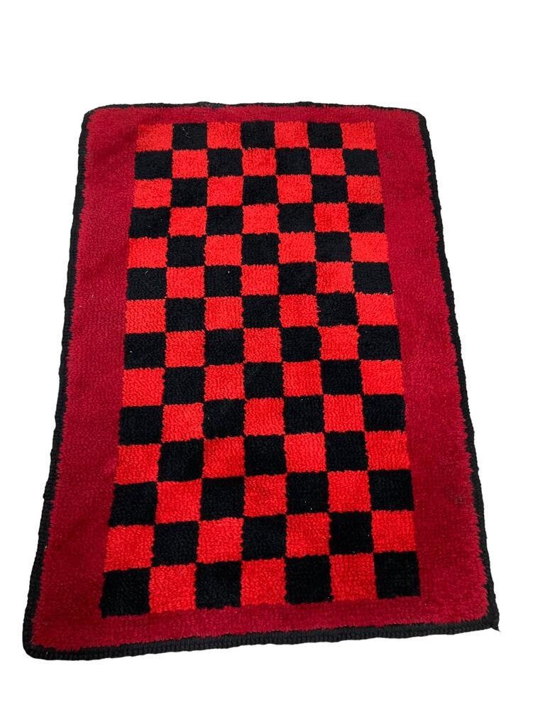 122h 85bVintage zwart rood geruit tapijtRetro vloerkleed mat