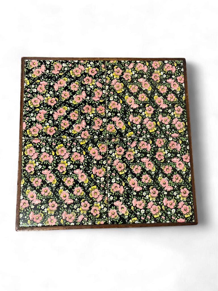 vintage bijzettafel met bloemenmotief / plantentafel / tegeltafel met mozaïeken bloemenmotief