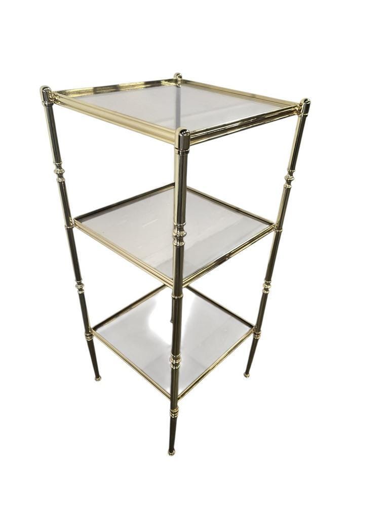 Vintage 'gouden' etagere / staande rek met fumé glas