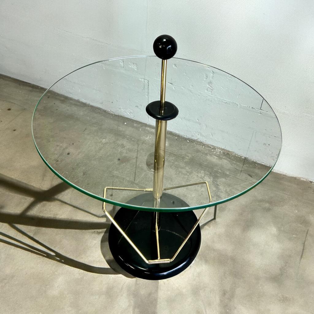 Retro ronde sidetable met stalen voet, bovenaan afgewerkt met een bol in kunststof