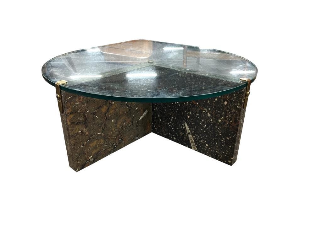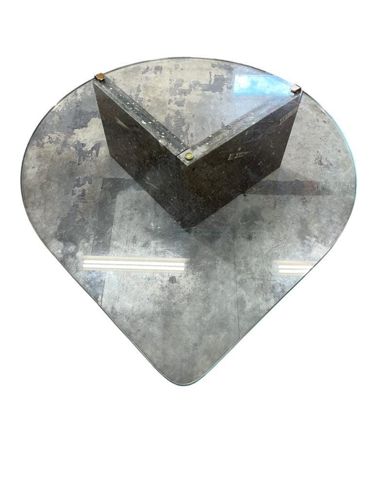 vintage glazen 'druppel' salontafel met stenen voet