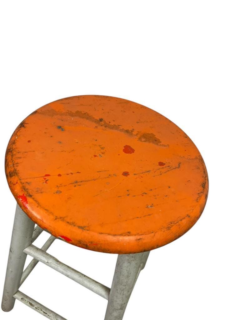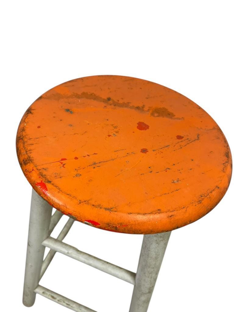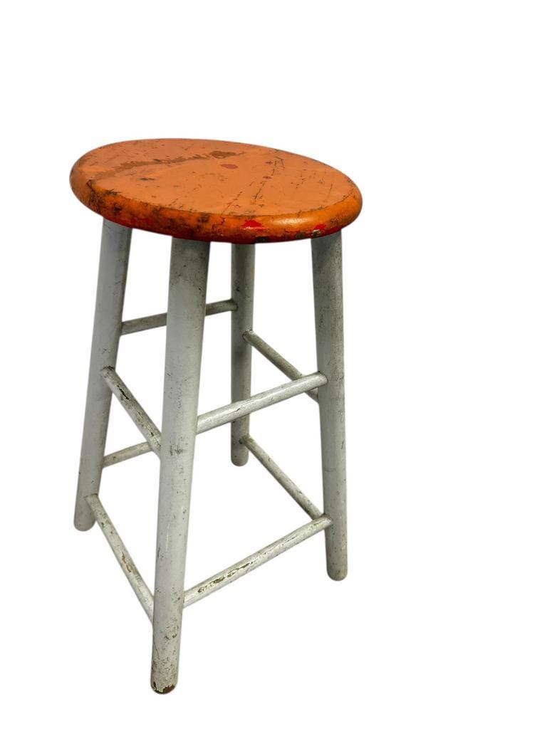 Vintage houten oranje kruk / barkruk / tabouret