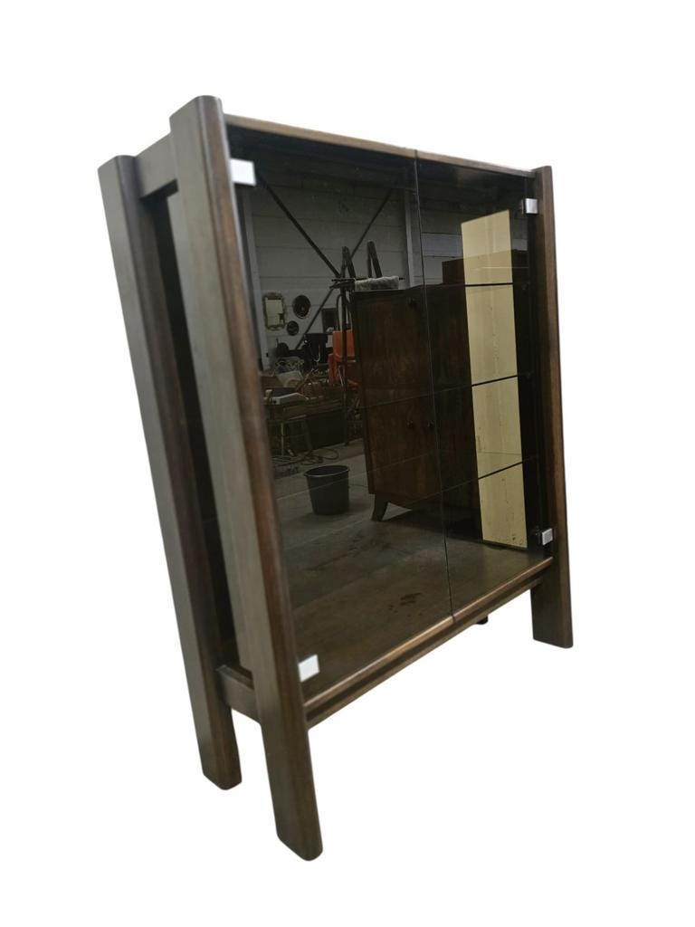 Retro kast / leggerkast / barkast met gerookt bruin glazen deuren