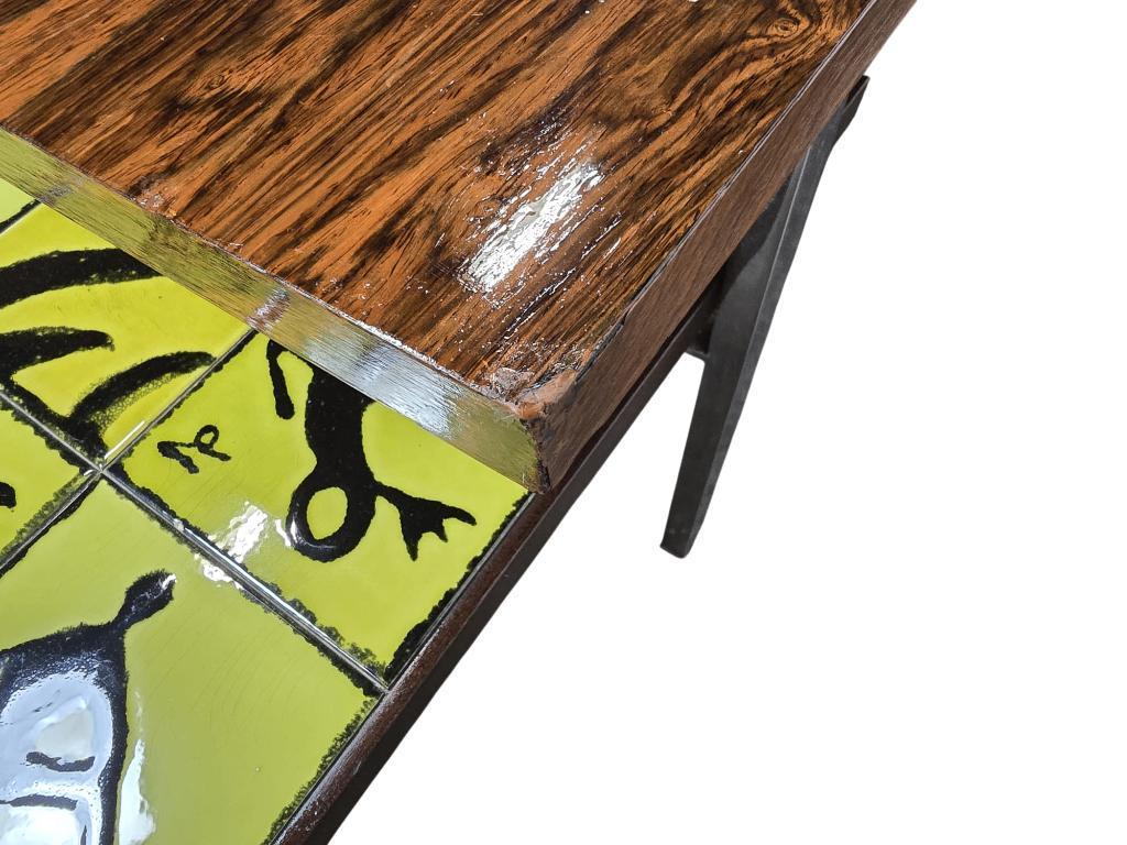 retro coffee table met keramieken extensies in het geel, thema horoscopen in de stijl van Henri Matisse