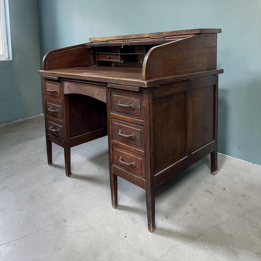 Vintage Amerikaanse bureau met rollluik